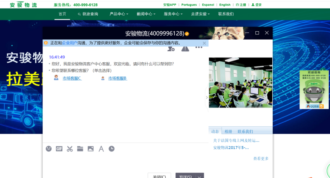 新版官網重視用戶體驗及功能提升,一方面使用大量的公司實景圖片,展示內容更加直觀、形象;與此同時,用戶可通過微信、QQ等互動工具,更加多元地了解安駿物流。