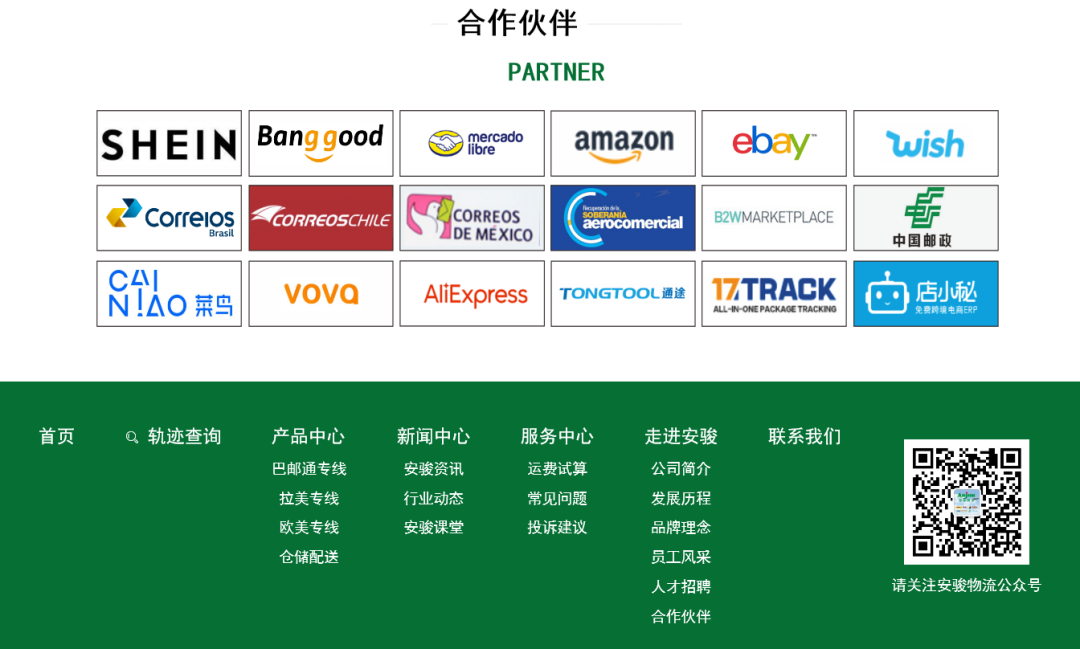 新版官網對信息內容及展現形式進行了整合編排,并增加了具有安駿特色的多個欄目。升級后的網站設置了軌跡查詢、產品中心、新聞中心、服務中心、走進安駿、聯系我們等在內的6個欄目,包含“巴郵通專線、拉美專線、歐美專線、倉儲配送”等29個子欄目,方便用戶更方便、快捷地對公司和產品信息進行查找。