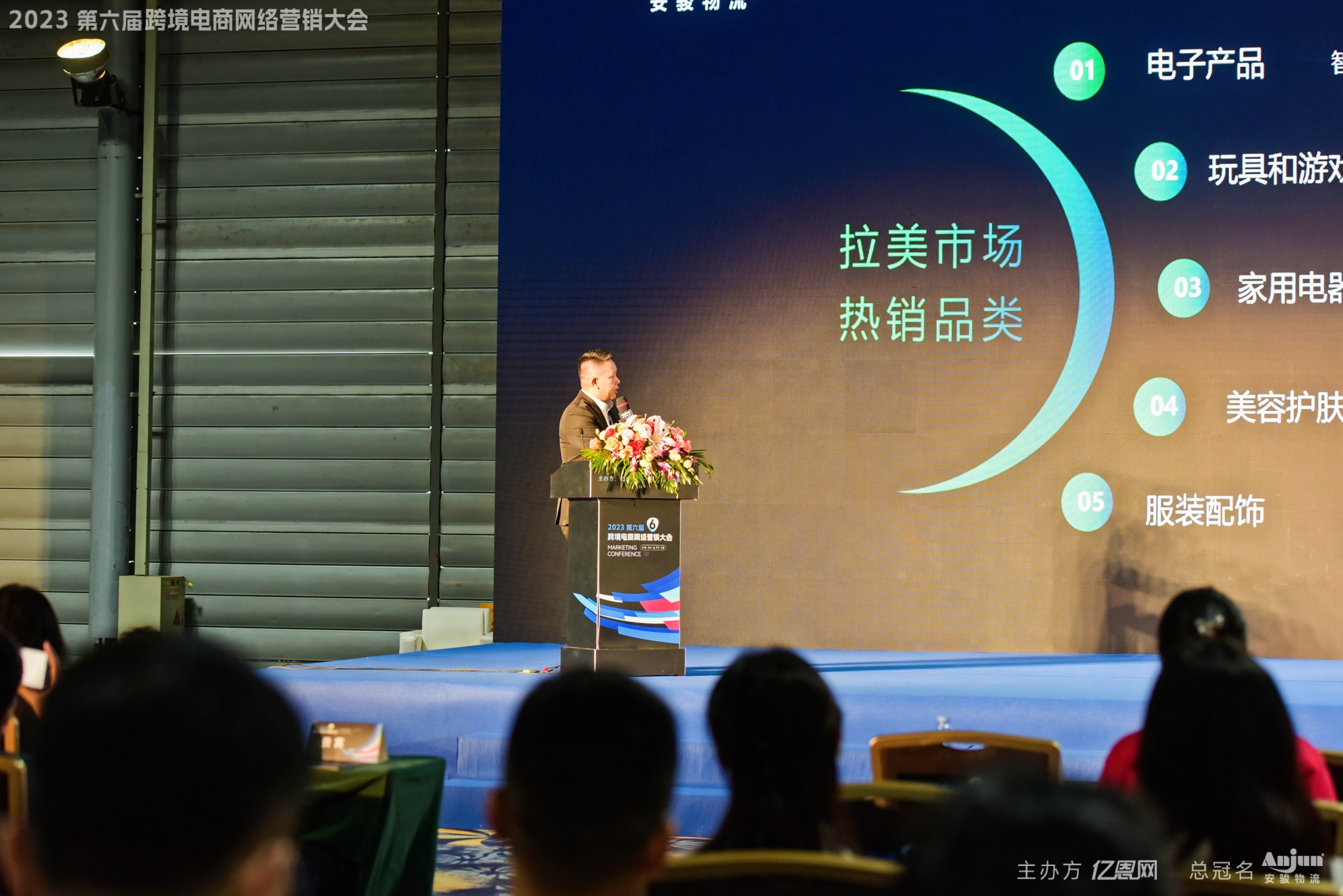 第二日的獨(dú)立站與拉美專(zhuān)場(chǎng)中,嘉賓們就品牌出海營(yíng)銷(xiāo)、ChatGPT、選品、物流等分享爆單秘籍。安駿物流作為本次峰會(huì)的總冠名商,由安駿物流副總經(jīng)理張家裕代表安駿上臺(tái)發(fā)表了拉美物流解決方案的主題演講。他為現(xiàn)場(chǎng)觀眾介紹了拉美區(qū)域的跨境市場(chǎng)發(fā)展歷程、當(dāng)?shù)叵埠?、?guó)家特征等,在第二,的發(fā)部分,就困擾賣(mài)家已久的拉美物流問(wèn)題,從各個(gè)國(guó)家的B2B與B2C稅收區(qū)別到最合適的物流渠道,安駿給出了自己的解決方案。