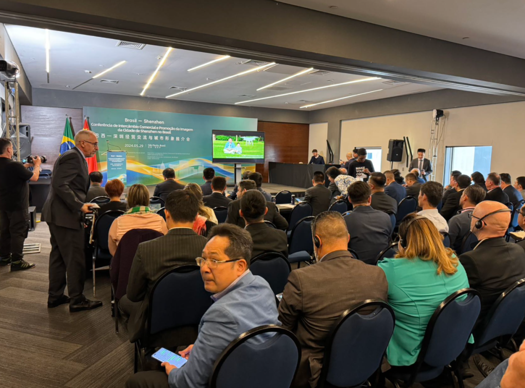 5月29日巴西-深圳經(jīng)貿(mào)交流與城市形象推介會在巴西圣保羅鉑爾曼酒店舉辦,深圳市委常委、深圳市海外聯(lián)誼會王強會長做了主題發(fā)言,王會長向到會的200多名中巴經(jīng)貿(mào)人士介紹了深圳改革開放以來在科技創(chuàng)新、城市建設(shè)、文化交流以及進出口經(jīng)貿(mào)等方面取得的成就與經(jīng)驗,并歡迎巴西企業(yè)人士去深圳考察。